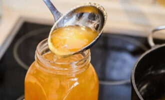 - We leggen de hete jam in gesteriliseerde potten, waarin we gebroeid kaneelstokjes doen en ze oprollen met deksels. Nadat de inhoud van de potten is afgekoeld, verplaatsen we ze naar een koele plaats.