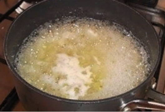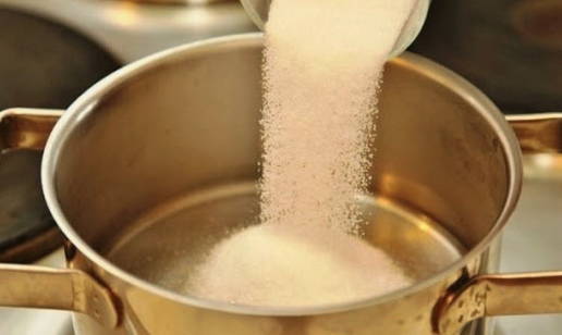 En ga onmiddellijk verder met de bereiding van suikersiroop. Om dit te doen, voeg je suiker toe aan een pan met water en breng je de vloeistof aan de kook.