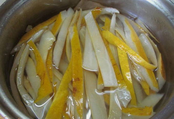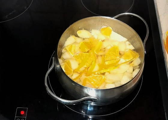 - Voeg na 20 minuten appels, citroenschil toe aan de meloen en kook de jam nog eens 10 minuten.