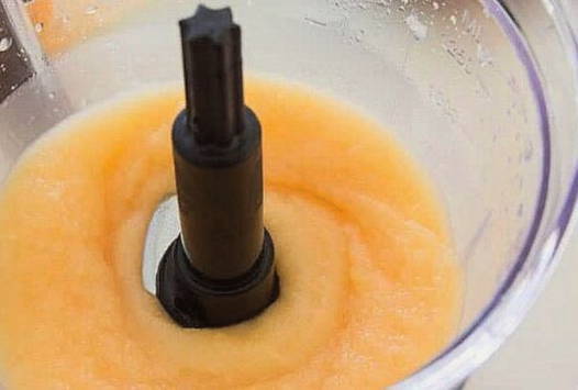 - We onderbreken de hele gehakte meloen tot een gladde massa met behulp van een blender of mixer.