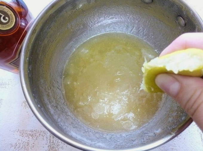 - Voeg het geperste citroensap, de resterende suiker toe aan een pan met water en roer goed. We laten de siroop vijf minuten op laag vuur koken.