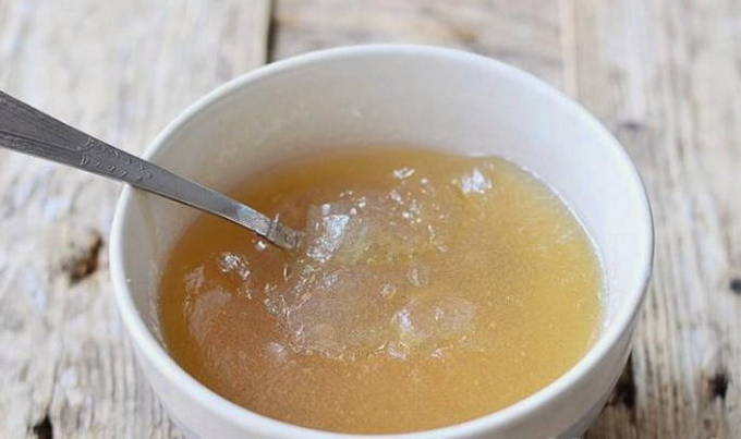 - Tegelijkertijd verdunnen we de gelatine volgens de instructies op het etiket en laten we het zwellen.