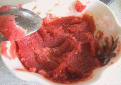 - We wassen de aardbeien goed, verwijderen het zand en verwijderen alle groene staarten. Maal dan pas alle bessen met een blender tot een dikke puree.