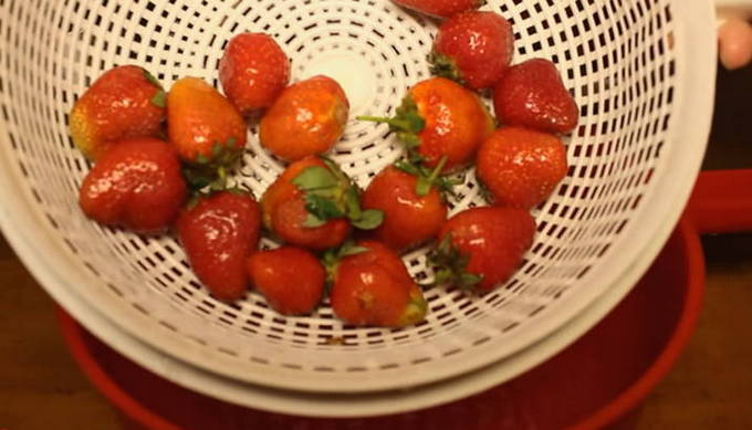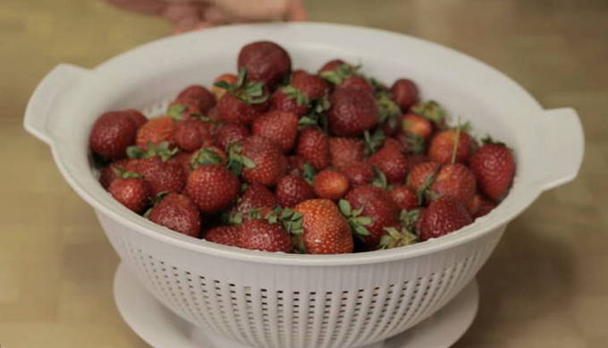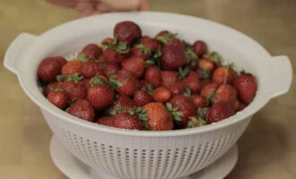 Begin met het bereiden van de bessen. Ga door de aardbeien, verwijder de slechte vruchten. Daarna goed afspoelen en weggooien in een vergiet.