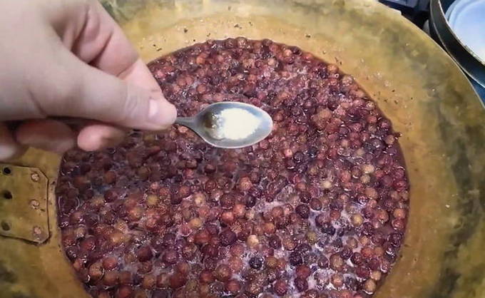 Los citroenzuur op in water in een verhouding van 1 op 1. Giet over de jam en kook de laatste 15 minuten. Tegen het einde van het koken moeten steriele potten en deksels al klaar zijn.