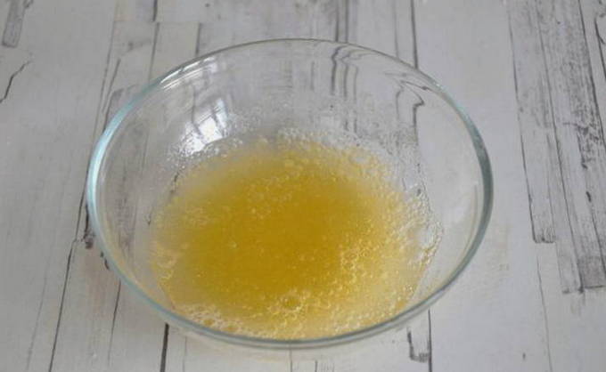 - De volgende stap is het bereiden van de gelatine. Het is voldoende om instant-gelatine met water bij kamertemperatuur te gieten en 20-30 minuten te laten staan. 40 gr. gelatine heeft ongeveer 100 ml nodig. water. Als je andere gelatine hebt, volg dan de instructies op de verpakking.