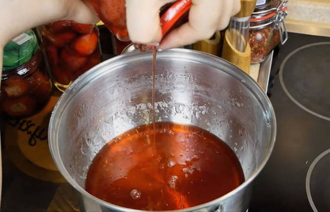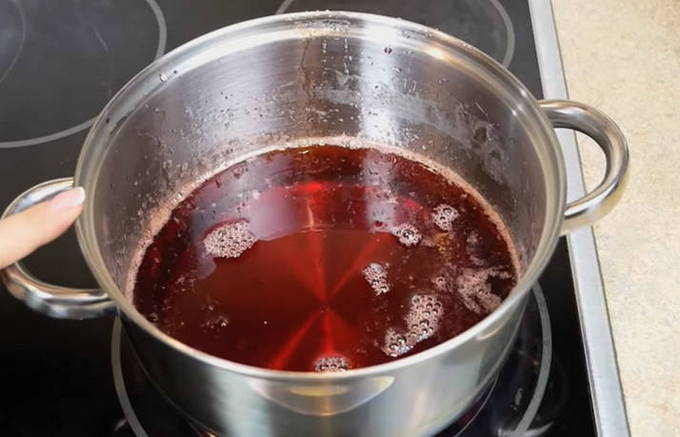 - Zet de siroop een tweede keer op het vuur. Breng opnieuw aan de kook. Schakel uit na 10 minuten matig koken.