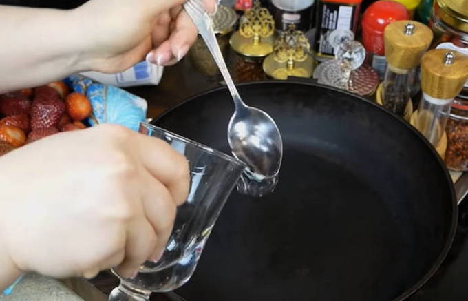 - Neem een pan met een dikke bodem en hoge zijkanten. Giet vervolgens 3 eetlepels water in de pan.