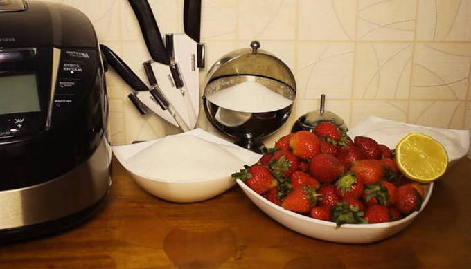 - Bereid de benodigde ingrediënten voor: aardbeien, suiker en een halve citroen. Je hebt alleen citroensap nodig. Kies rijpe bessen - zo wordt de jam nog zoeter.