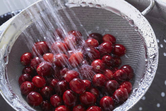 - Sorteer de veenbessen en was ze. Leg de veenbessen in de siroop en kook op middelhoog vuur gedurende 10 minuten na het koken.