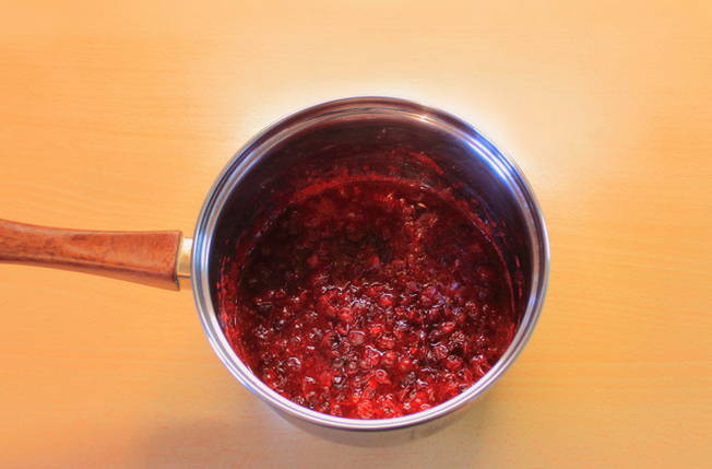 - Doe de veenbessen in een pan, voeg een half glas water toe, zet op vuur en kook tot de bessen barsten.
