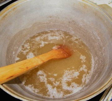 - Kook vervolgens de suikersiroop. Giet de helft van de suiker in een pan en giet er water bij, breng het mengsel aan de kook, zet het vuur lager en kook gedurende 15 minuten.