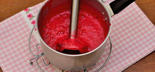 Haal vervolgens de pan van het vuur en pureer de bessen met een blender.