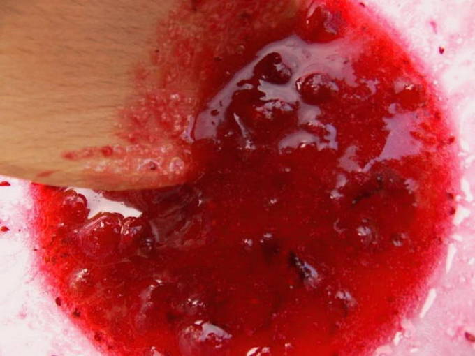 - Gedurende deze tijd zullen de veenbessen het sap vrijgeven en zal de suiker bijna volledig smelten.