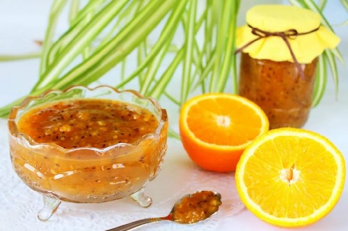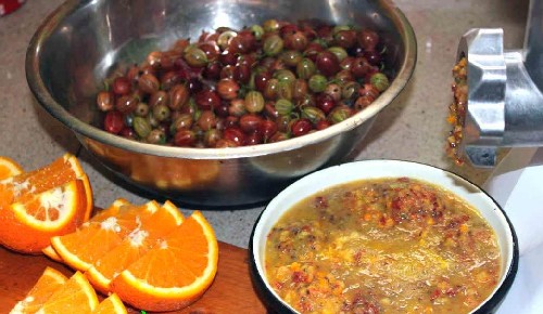 - De jam van kruisbessen en sinaasappel is klaar. Het blijkt zeer aangenaam te zijn, dikke consistentie, aromatisch, delicaat van smaak en ongelooflijk gezond.