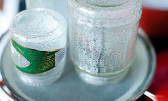 - Terwijl de jam aan het brouwen is, heb je tijd om aan de potten te sleutelen. Neem het aantal blikken dat je nodig hebt en was ze eerst met zuiveringszout. In dit geval moet het water zo heet mogelijk zijn (voor zover uw handen dit kunnen verdragen). Daarna moet je de potten ongeveer 10-15 minuten koken (sommigen steriliseren de potten nog steeds in de oven of magnetron).