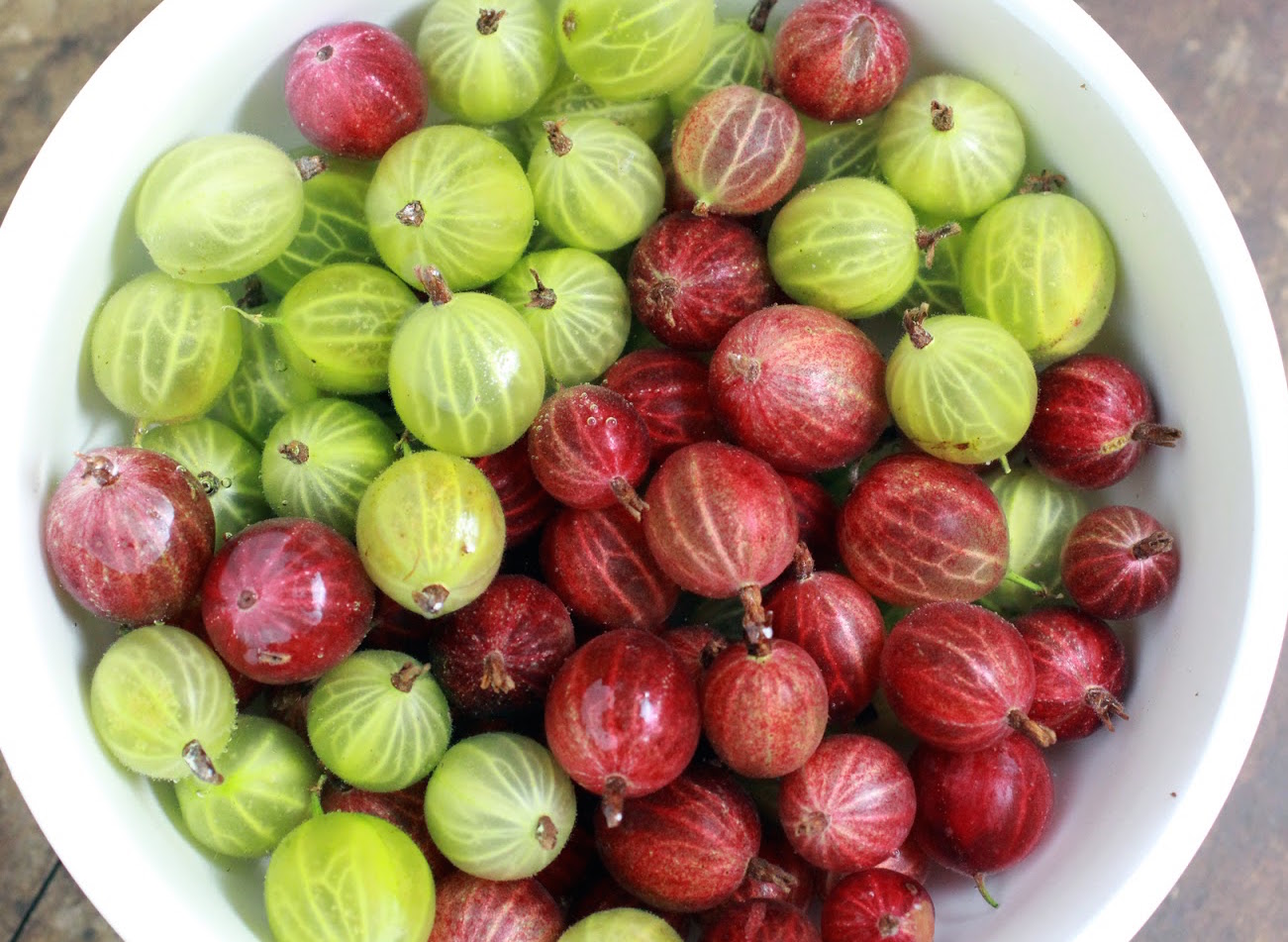 - Eerst moet je de kruisbessen grondig wassen, het is het beste om ze in een grote bak te doen, ze met water te vullen en te roeren. Al het overtollige vuil zal naar de oppervlakte drijven. Tap vervolgens het water af en herhaal de hele procedure.