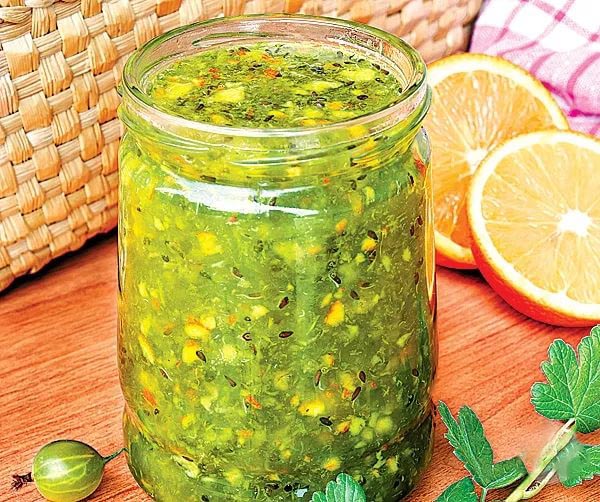 Een ongebruikelijke combinatie van zoete kruisbessen en geurige sinaasappel met zure walnoten zorgt voor een onvergetelijke smaaksensatie voor iedereen die ooit zo'n jam heeft geprobeerd. Als je al lang iets ongewoons wilt proberen, dan is ons recept het beste geschikt voor deze doeleinden.