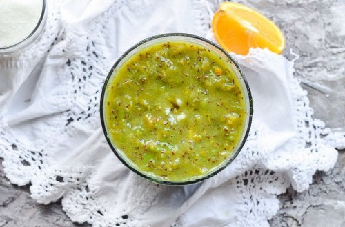 Ongewone smaak, textuur en smaragdgroene kleur met zwarte spatten geven kiwi-kruisbessenjam. Door een zekere zuurgraad van deze overzeese vrucht blijven de vitamines en voedingsstoffen van de kruisbes zoveel mogelijk behouden tijdens het oogsten en bewaren.