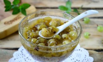 In dit recept wordt u uitgenodigd om de helft van de kruisbessen fijn te hakken tot puree en de andere helft van de bessen heel te laten. Je jam zal zijn als jam met hele bessen. Je kunt de smaak benadrukken met een beetje kaneel.