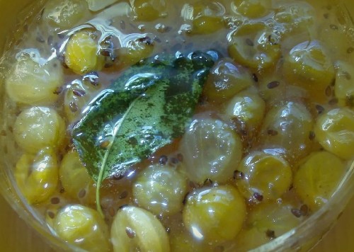 - Eenvoudige kruisbessenjam met kersenbladeren