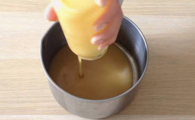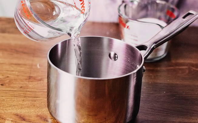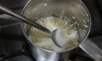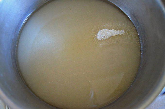 - In een pan suiker en water mengen en aan de kook brengen. Je moet de siroop koken totdat de suiker is opgelost en de massa homogeen wordt.