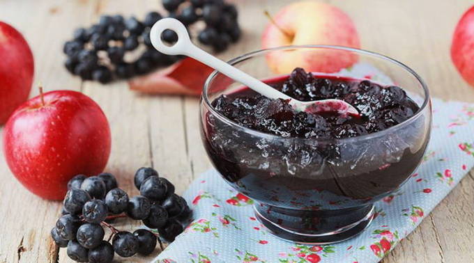 Aronia-bessen hebben een interessante smaak, maar ze verminderen de druk aanzienlijk, wat de moeite waard is om te onthouden voor degenen die jam met dergelijke bessen eten. De appel vormt een aanvulling op de lijsterbes in het dessert, terwijl de kaneel smaak en pikantheid toevoegt.