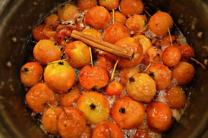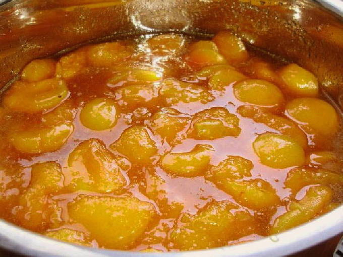Rijpe of zelfs overrijpe vruchten zijn geschikt voor het maken van dikke paradijsappels. Deze lekkernij is geschikt voor gebruik met thee en brood of als vulling in taarten en cakes.