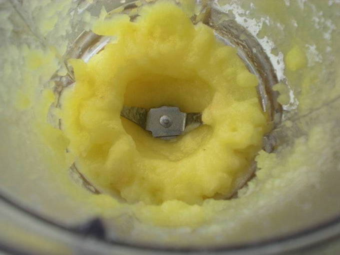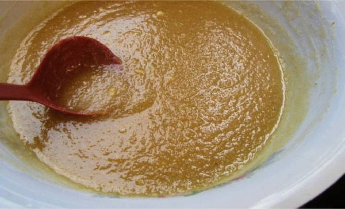 - Klop de kernloze plakjes met een blender. Als er geen tijd was voor het bereidingsproces, kun je de massa malen met een zeef om zaden en harde delen van de kern te verwijderen.