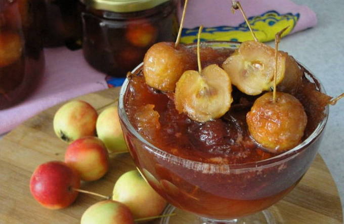 Dit recept is geschikt voor drukke huisvrouwen die niet al te veel tijd kunnen besteden aan de voorbereiding op de winter, maar die zelfgemaakte heerlijke jam voor thee willen verwennen. Paradise-appels worden heel gebruikt, samen met staarten: een origineel en ongewoon dessert wordt verkregen.