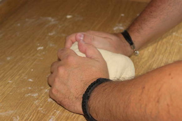 - Kneed het deeg tot er een dichte en zachte klont ontstaat.