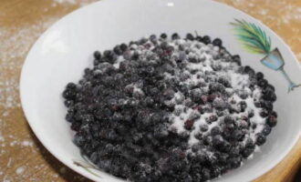 - Bestrooi de bevroren bosbessen met suiker. Roer de vulproducten.