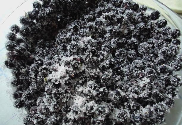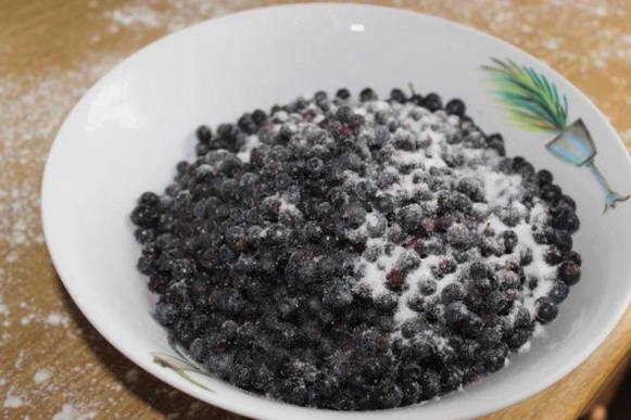 - We wassen de bosbessen. Laat het volledig drogen en roer het dan naar smaak met suiker.