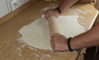 Rol het dichte deeg uit tot een dunne laag.