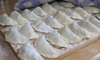 - We verbinden de randen van het deeg en maken nette dumplings. De randen moeten goed op elkaar aansluiten.