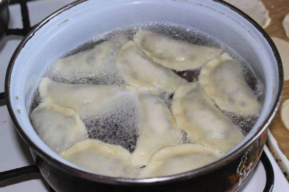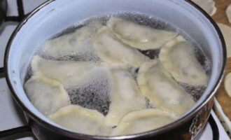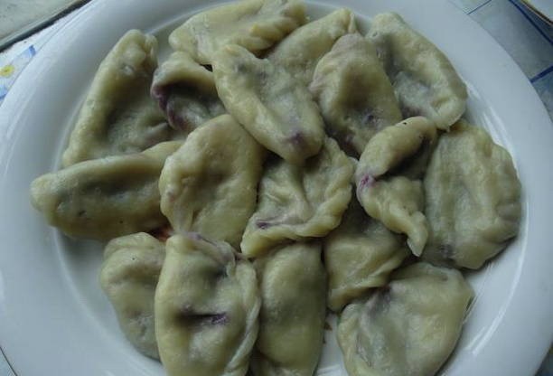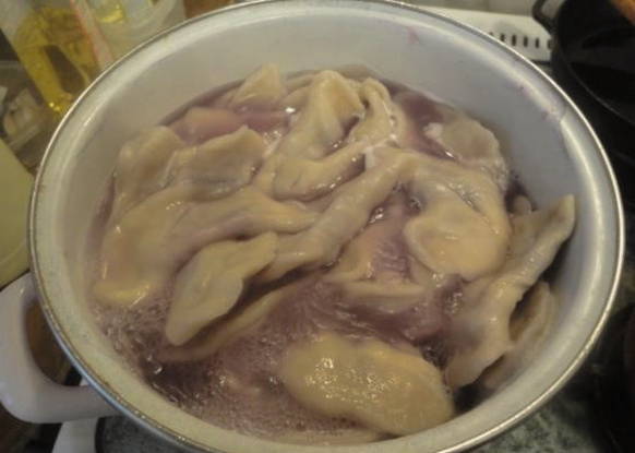 - We plaatsen bessen met suiker in elk stuk. We vouwen de producten tot dichte dumplings. Kook het gerecht 5 minuten in kokend water.