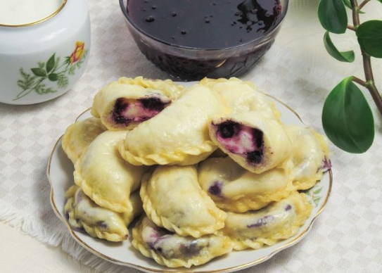 Delicate en heerlijke zelfgemaakte dumplings kunnen gevuld worden met kwark en bosbessen. Het gerecht zal u verrassen met een licht bessenaroma en eenvoudige culinaire processen. Geschikt voor ontbijt en desserts.