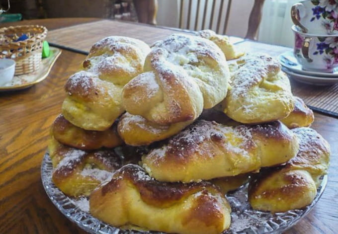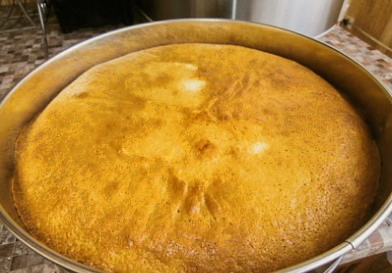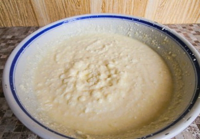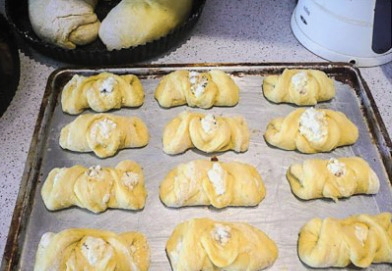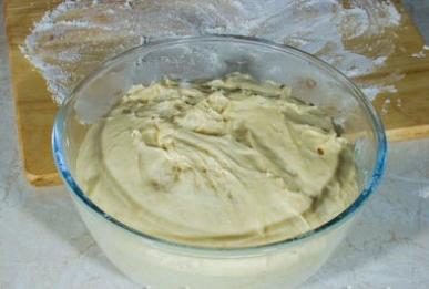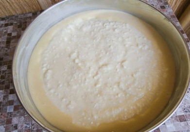 - Eerst verdunnen we gist en suiker in warme melk, dan voegen we hier eieren, zout, boter en gezeefde bloem toe. Kneed het deeg goed door en laat het 30 minuten op een warme plaats staan.