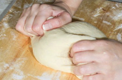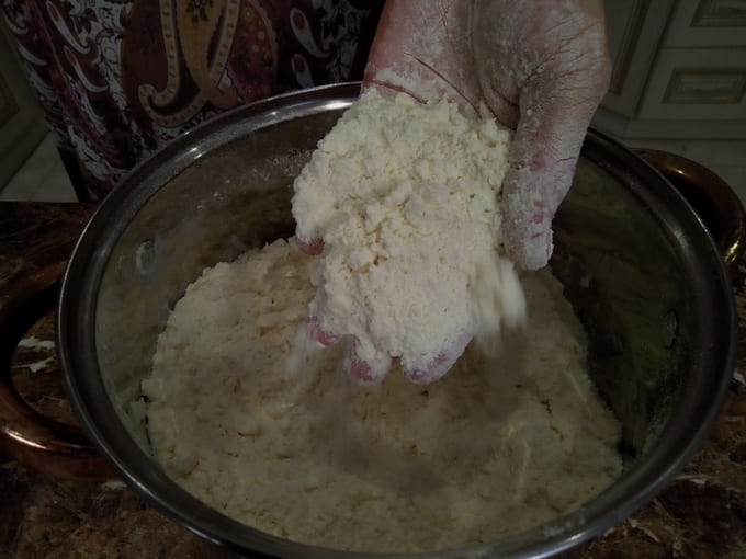 - Nadat het deeg opkomt en in omvang groeit, kneed je het met je handen en verdeel je het in gelijke kleine delen.