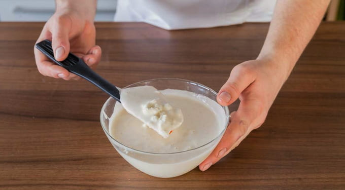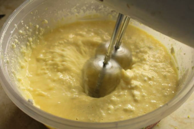 - Roer de massa. Je kunt het met een blender kloppen voor een delicater product.