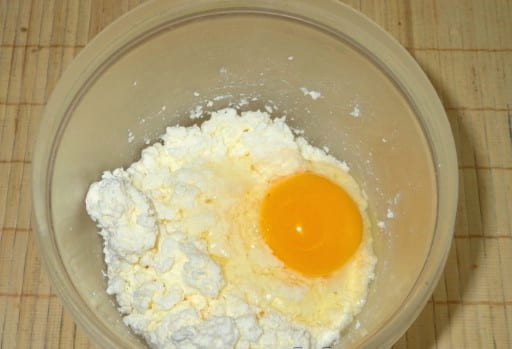 - Combineer kwark met ei in een aparte kom. We wrijven de inhoud.