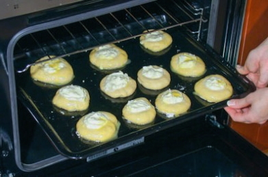 - We verspreiden de voorbereide cheesecakes op een bakplaat. We sturen het gerecht 25-30 minuten naar de oven. Koken op 180 graden.