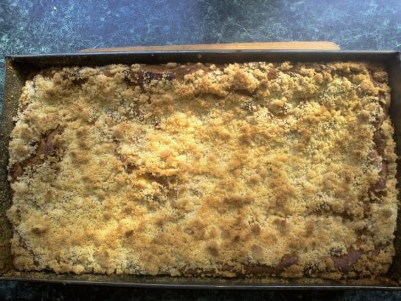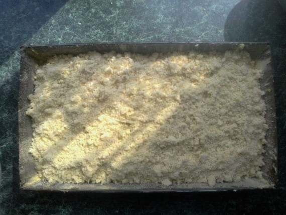- We sluiten de blanco met de resterende kruimels van boter en bloem.