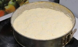 - Doe een deel van het deeg in een ovenschaal. De laag moet strak en glad zijn.