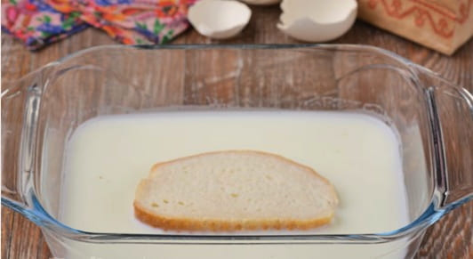 - Week elk plakje in een kom melk, dus het is belangrijk dat het brood niet te zacht is.