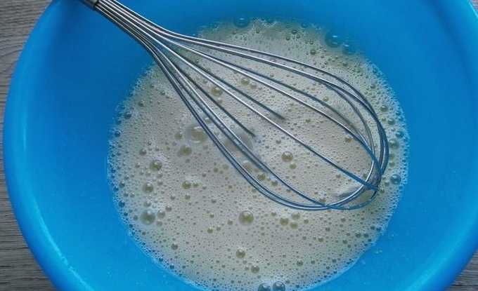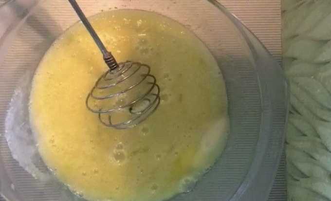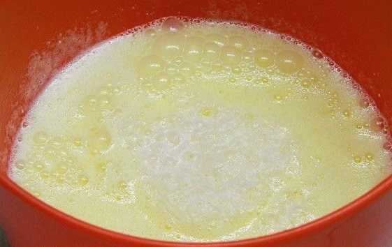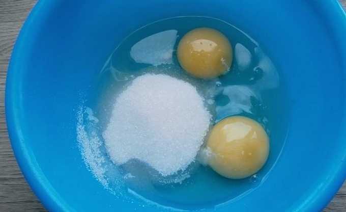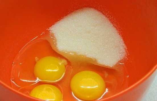 - Combineer eieren met suiker en klop grondig tot een gladde massa.