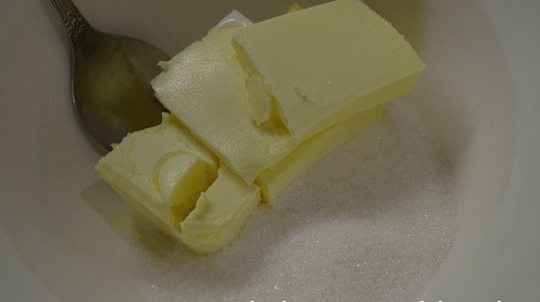 - We halen de boter van tevoren uit de koelkast en laten deze een beetje smelten. Voeg er dan twee soorten suiker aan toe en wrijf goed uit met een vork of op een andere handige manier.