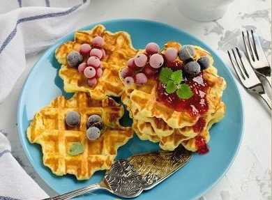 Weelderige en stevige Weense wafels kunnen volgens een speciaal recept worden bereid met toevoeging van kwark. Dit dessert is perfect voor een familieontbijt. Het kan worden aangevuld met jam, honing of verse bessen.