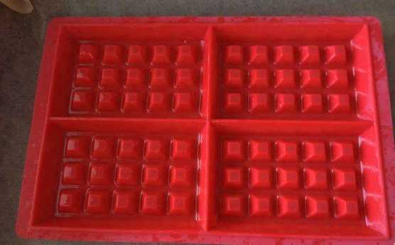 - Smeer de siliconenwafelvorm grondig in met plantaardige olie.