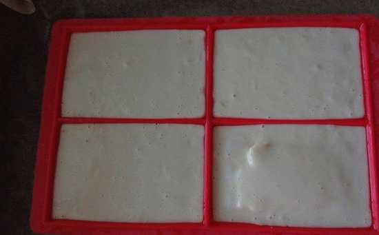 - Giet het beslag gelijkmatig in de vorm en stuur het naar de oven, voorverwarmd tot 180 graden.